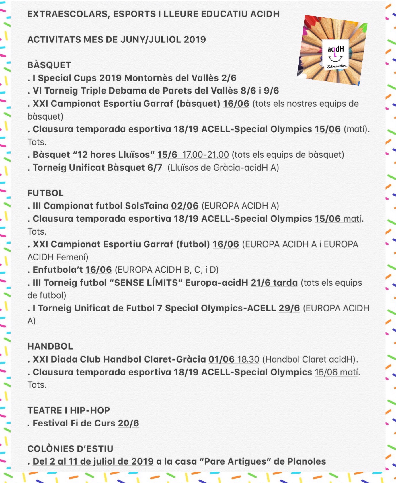 COLÒNIES D’ESTIU Extraescolars, Esports i Lleure Educatiu acidH