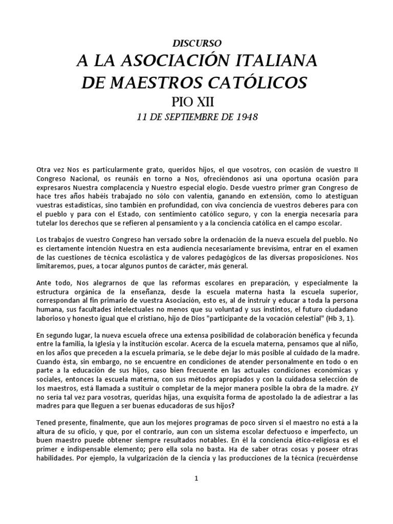 A La Asociación Italiana Pio Xii PDF Iglesia Católica Educación