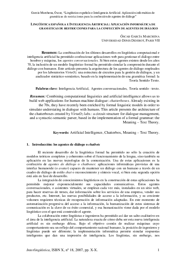 (PDF) Lingüística española e Inteligencia Artificial Aplicación informática de gramáticas de