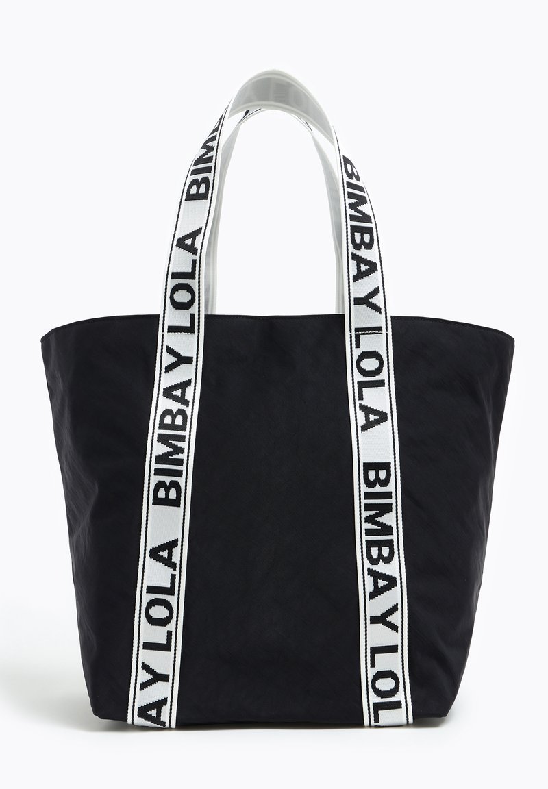 Comprar Bimba y Lola bolso shopper tipo shopper XL. Negro, correa con estampado del logo, dos asas largas en la parte superior, cierre con cremallera en el tope, compartimento principal, bolsillo interno con cremallera y parche del logo en el interior.