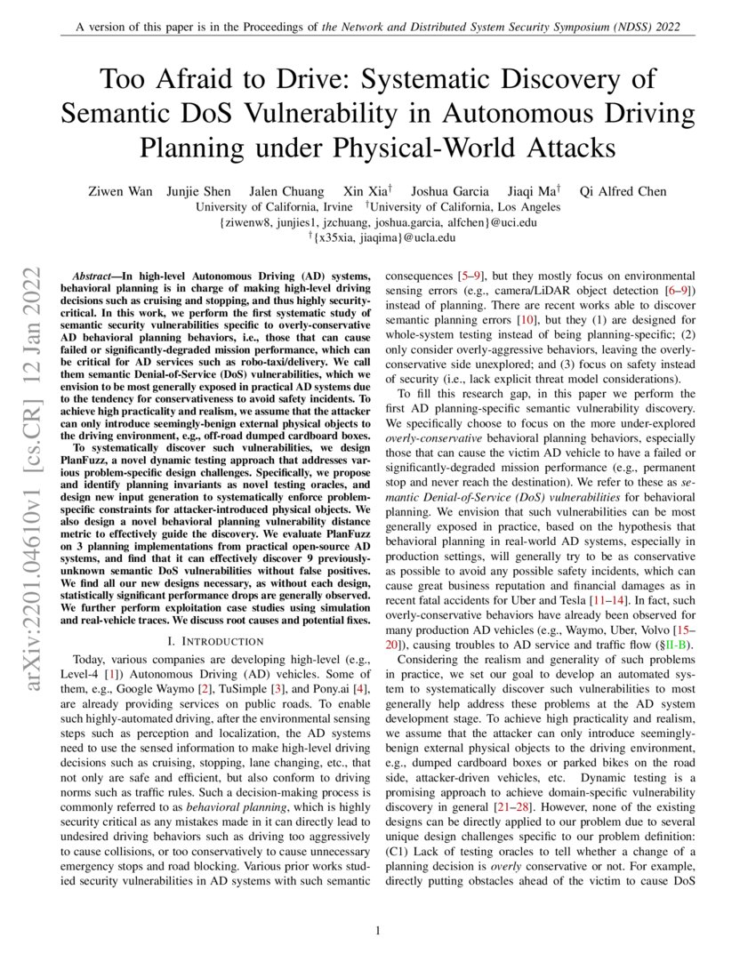Too Afraid to Drive Systematic Discovery of Semantic DoS Vulnerability in Autonomous Driving