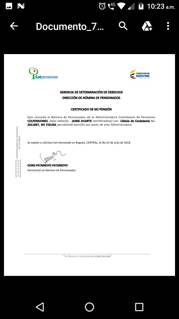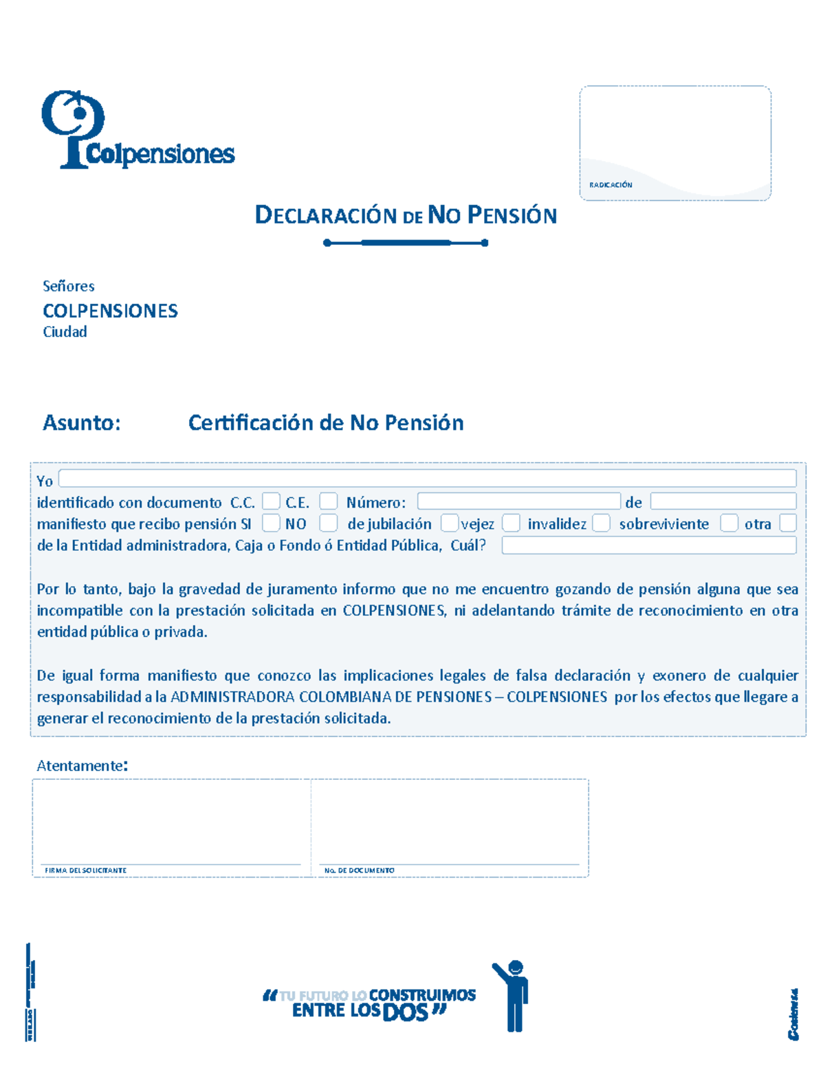 Declaracion de NO pension Señores COLPENSIONES Ciudad Atentamente