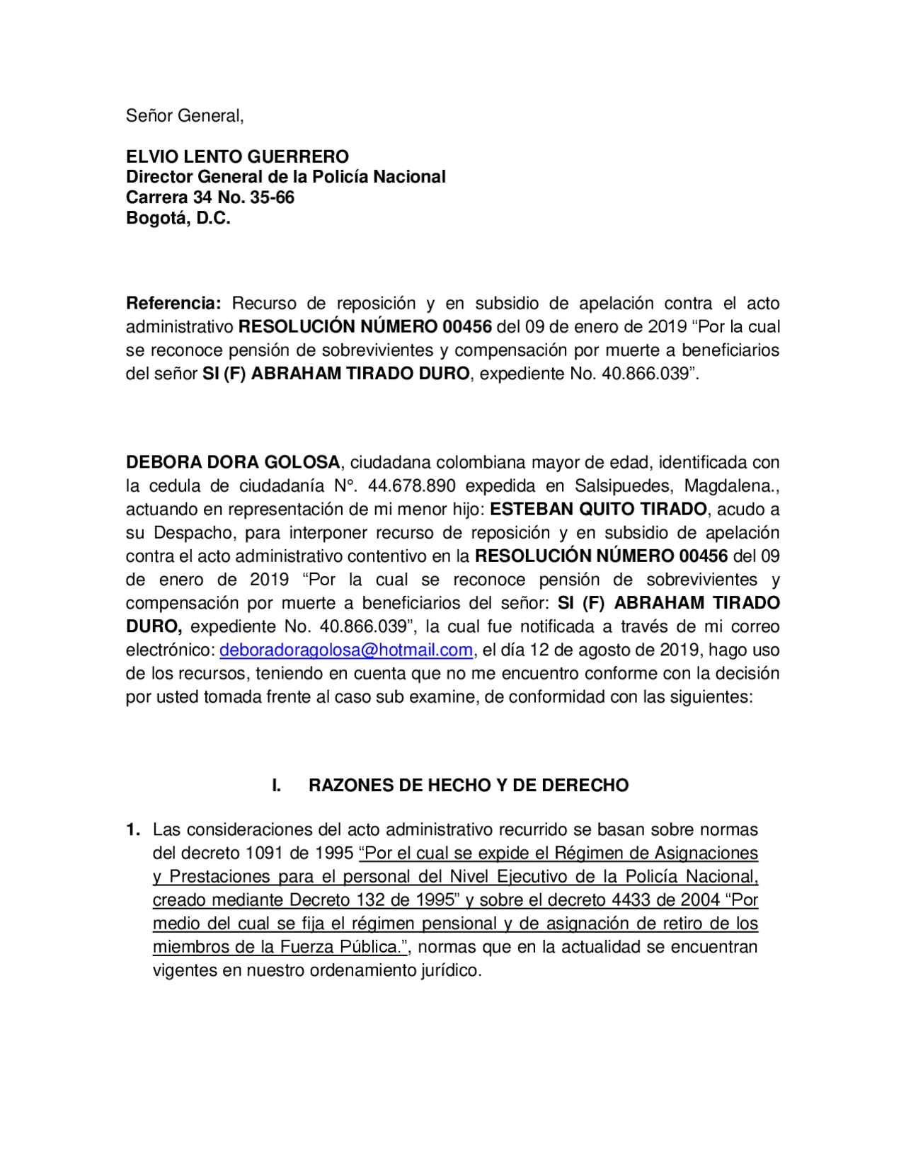 RECURSO DE REPOSICION Y APELACION RESOLUCION DE PENSION Apuntes de