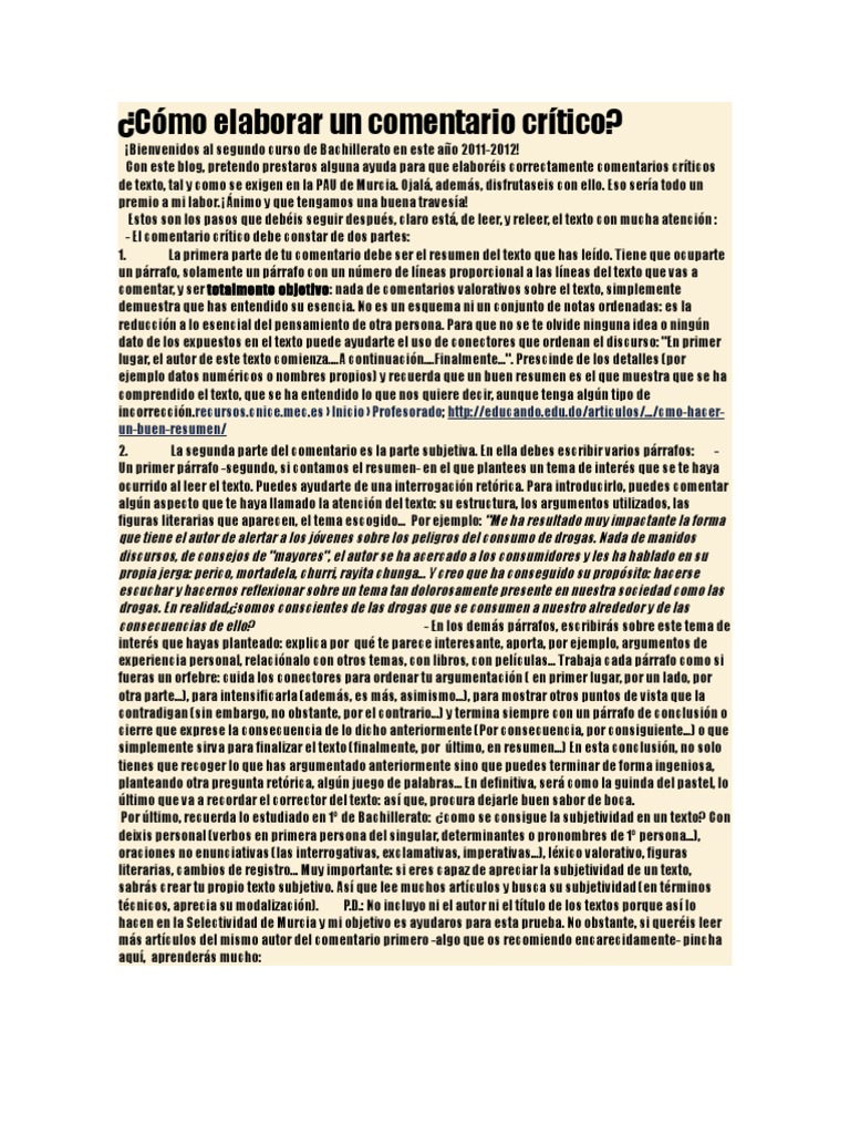 Cómo Elaborar Un Comentario Crítico Drogas Retórica Prueba