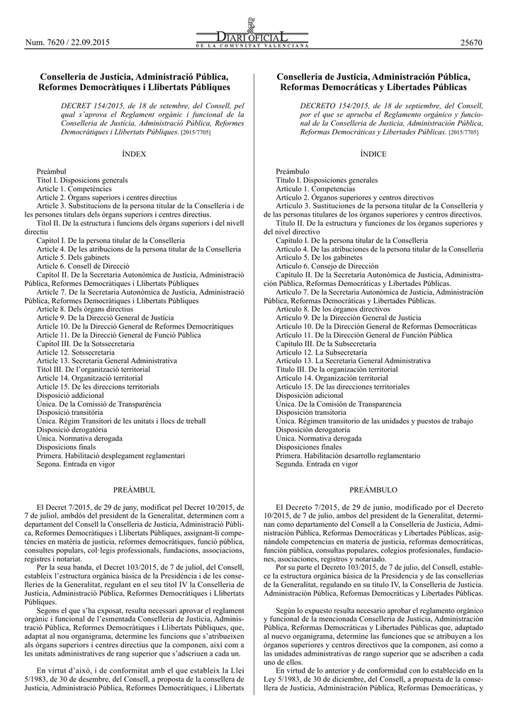 DECRET 154/2015, de 18 de setembre, del Consell, pel qual s