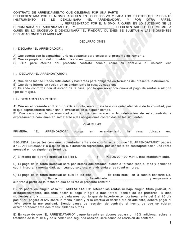Formato Contratos De Renta De Casa MIDE