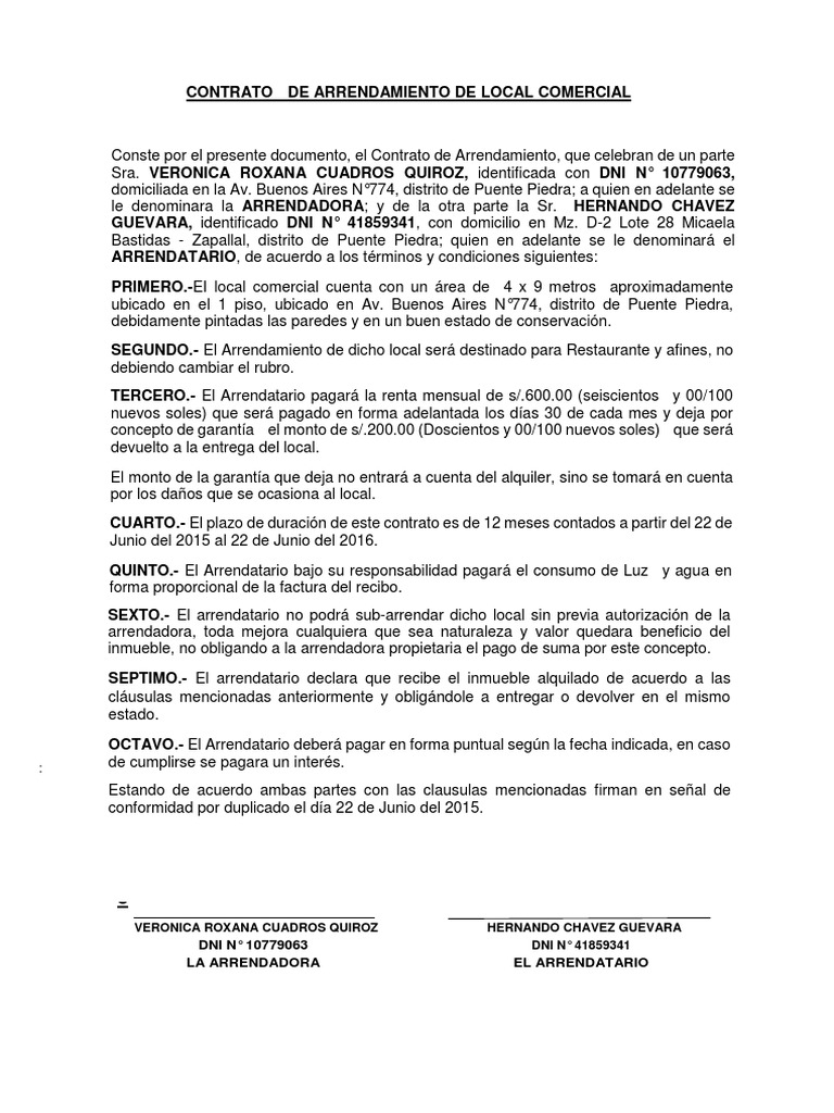 Modelo Contrato De Arrendamiento Rental Agreement Templates National Debt Relief Lettering