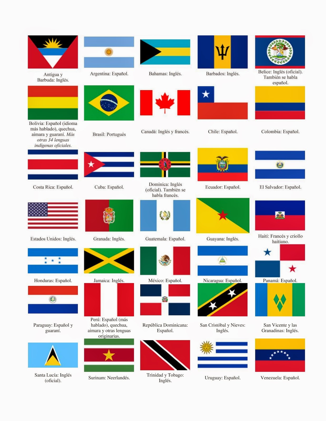 Aprendo Para Vivir Mejor Paises, Banderas e Idiomas hablados en el Continente Américano