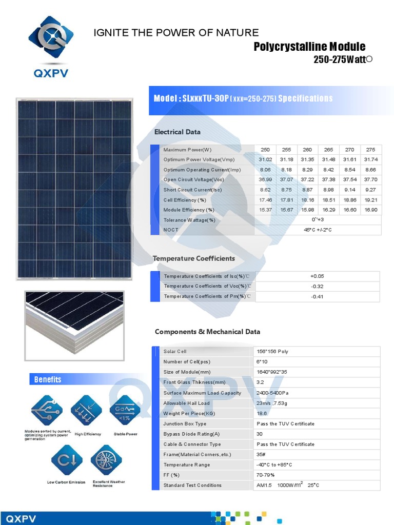 Ficha Técnica PANEL 275W PDF Solar Cell Electric Power